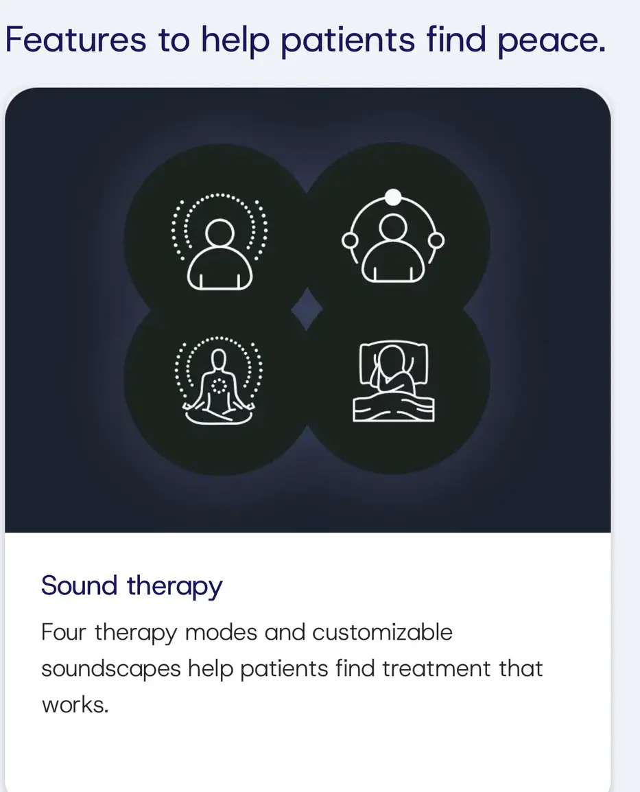 Neurotone's AI Tinnitus pro is a comprehensive app-based system designed for personalized tinnitus relief by combining habituation, adaptation therapies and Cognitive Behavioural Therapy (CBT). It uses customizable soundscapes, including notch noise therapy to help patients reduce the emotional impact and manage the perception of tinnitus through gamified engagement and professional web-based monitoring.